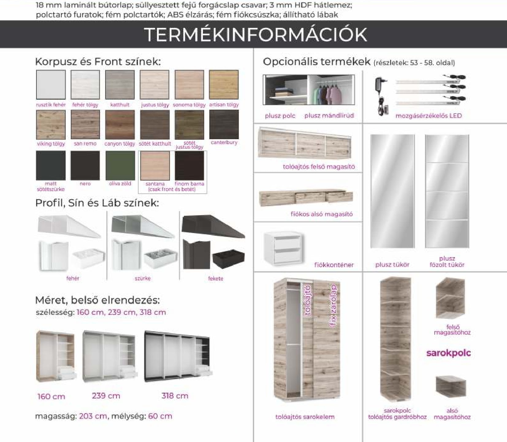 KORPUSZ ÉS FRONT SZÍNEK | artisan tölgy, canterbury, canyon tölgy, fehért tölgy, justus tölgy, katthult, matt sötétszürke, nero, oliva zöld, rusztik fehér, san remo, sonoma tölgy, sötét justus tölgy, viking tölgy |