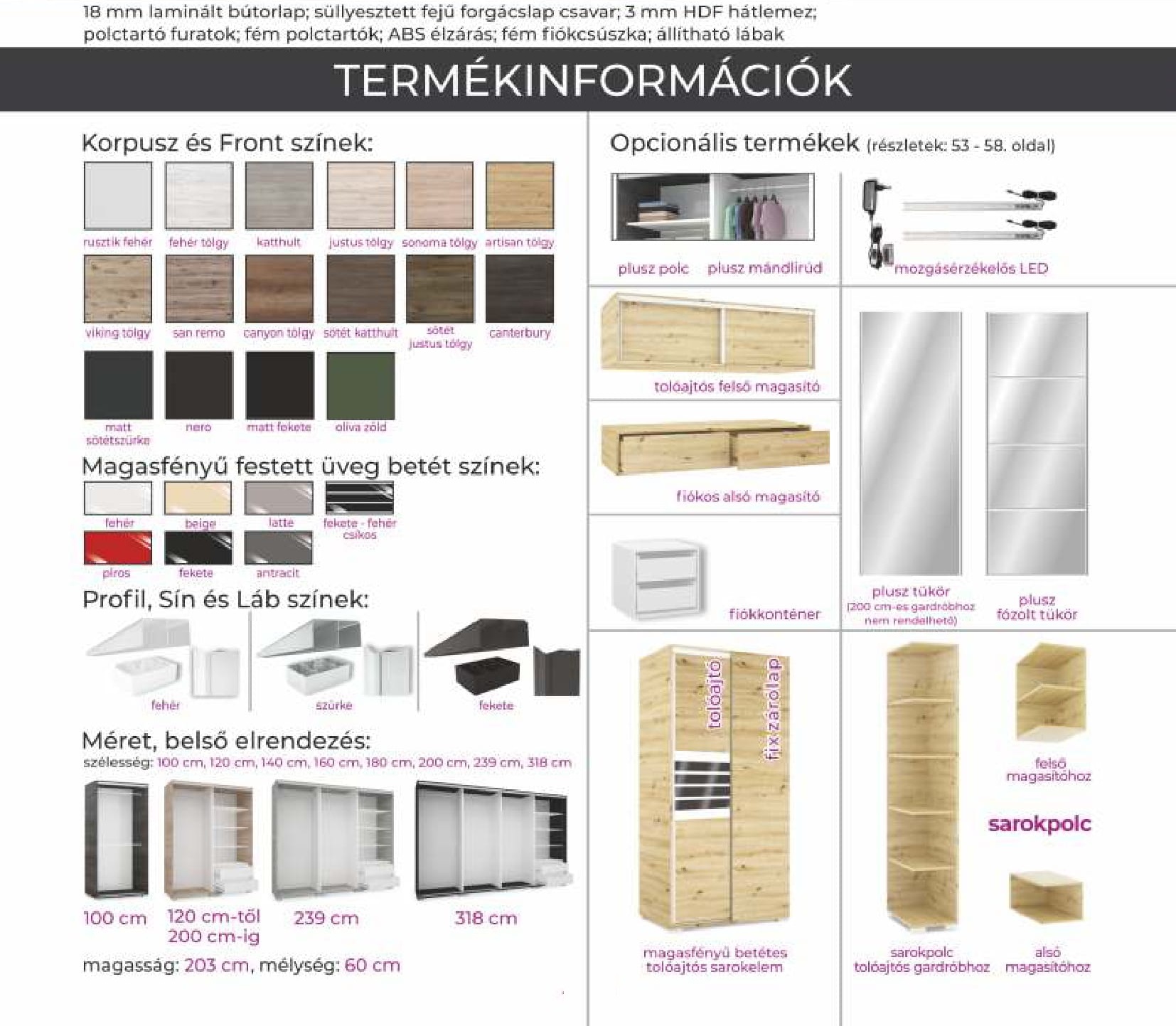 KORPUSZ ÉS FRONT SZÍNEK | artisan tölgy, canterbury, canyon tölgy, fehért tölgy, justus tölgy, katthult, matt fekete, matt sötétszürke, nero, oliva zöld, rusztik fehér, san remo, sonoma tölgy, sötét justus tölgy, sötét katthult, viking tölgy |