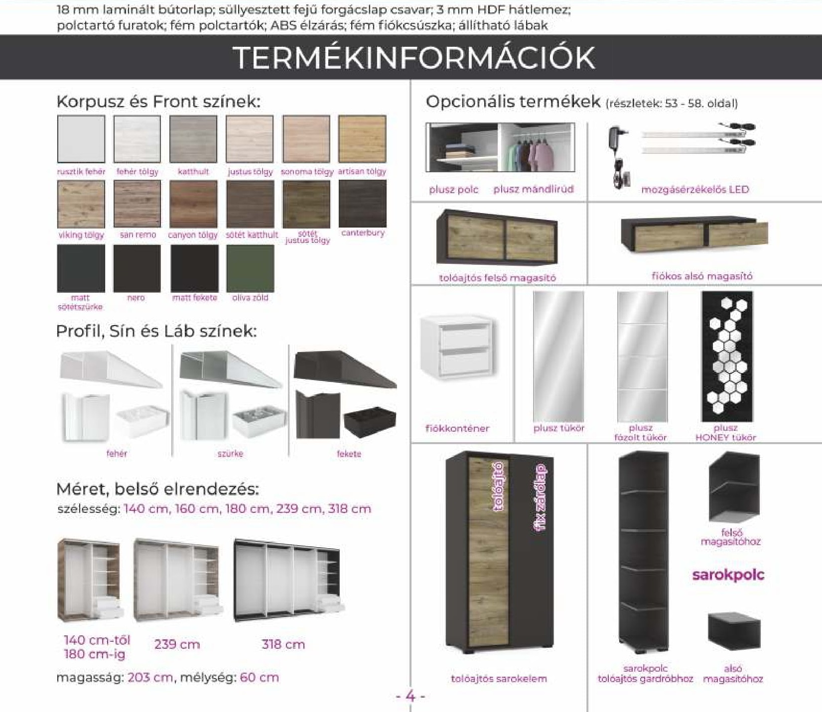 MÉRETEK | 140 cm, 160 cm, 180 cm, 239 cm, 318 cm |