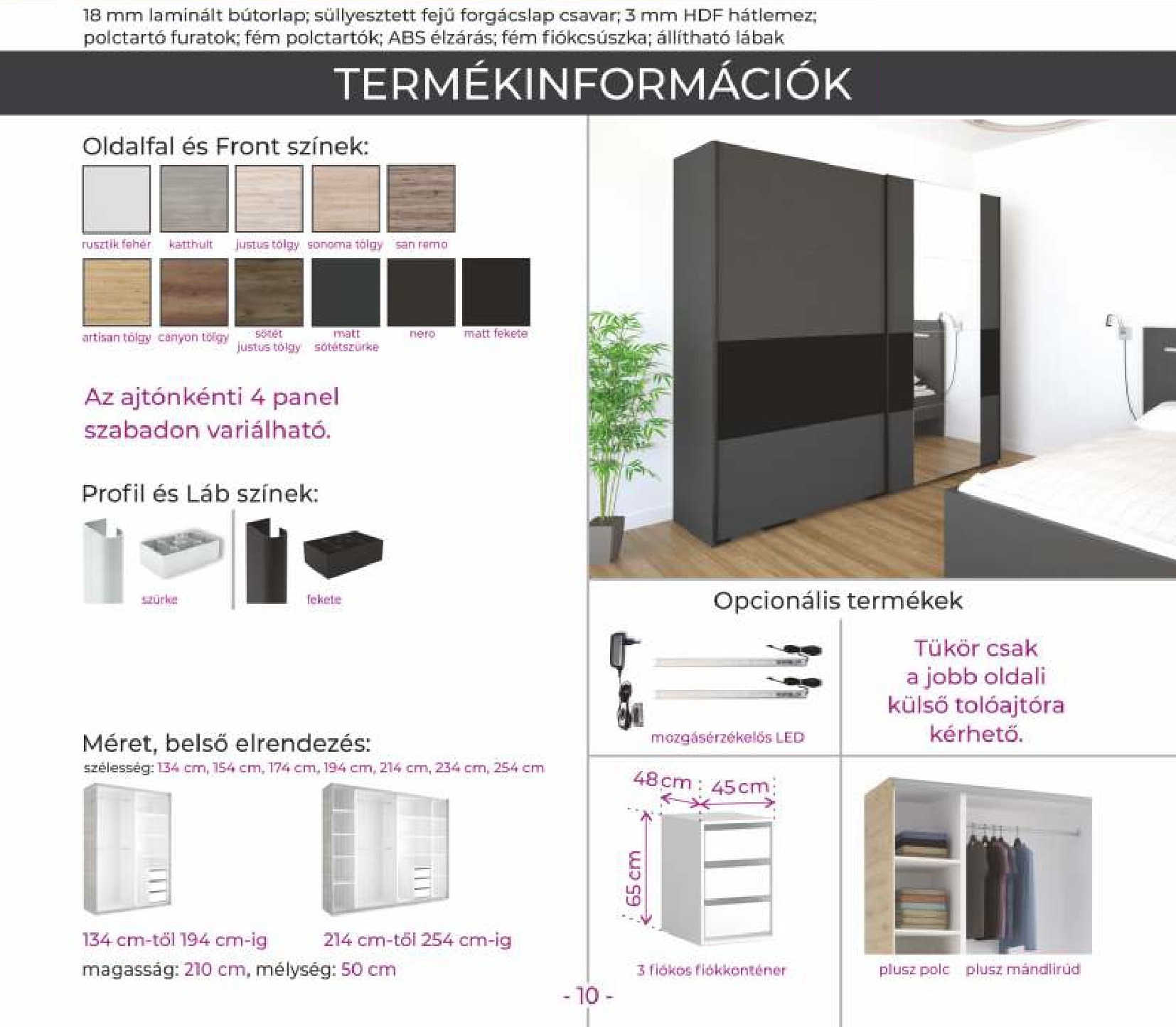 artisan tölgy, canyon tölgy, justus tölgy, katthult, matt fekete, matt sötétszürke, nero, rusztik fehér, san remo, sonoma tölgy, sötét justus tölgy