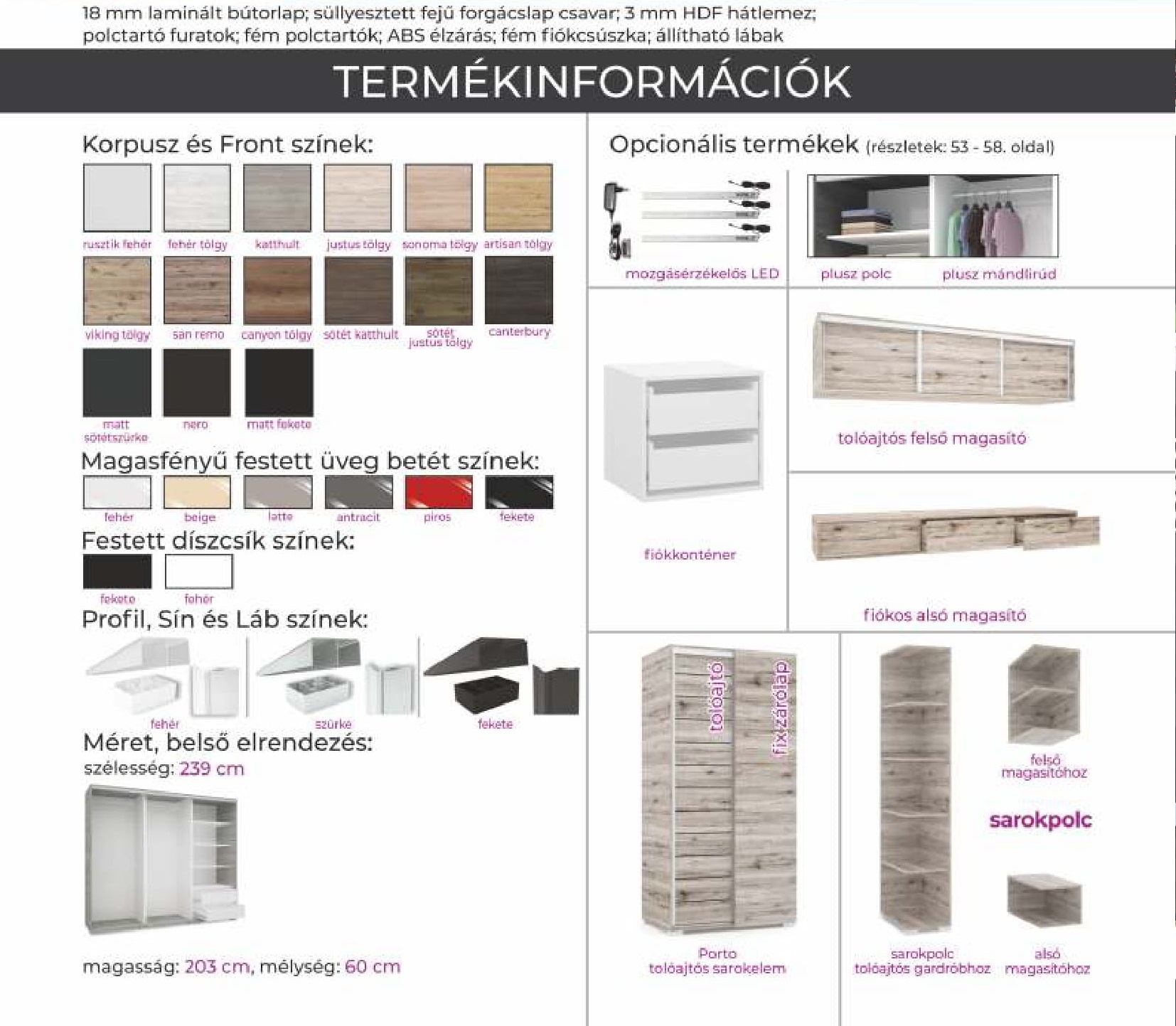 artisan tölgy, canterbury, canyon tölgy, fehért tölgy, justus tölgy, katthult, matt fekete, matt sötétszürke, nero, rusztik fehér, san remo, sonoma tölgy, sötét justus tölgy, sötét katthult, viking tölgy